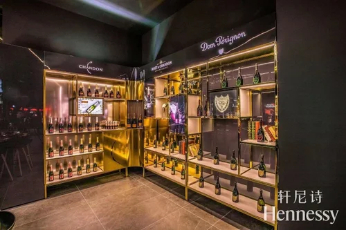 Designed to showcase the wide range of champagne brands by Moet Hennessy, this custom wall bay was designed not only to attractively display the product but also fit seamlessly into the overall environment. The wall bay was designed with a lux finish to portray the elegance of champagne and celebration. The wall shelving was also designed modularly with interchangeable parts for easy updates and scalability.